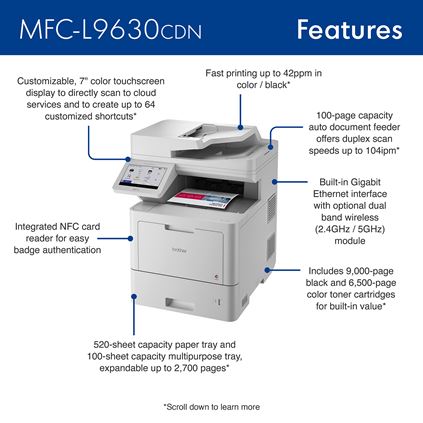 MFC-L9570CDW - Business Color Laser All-in-One Printer for Mid-Size Workgroups with Higher Print Volumes